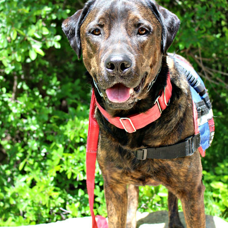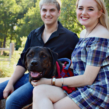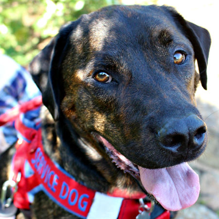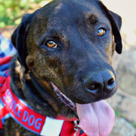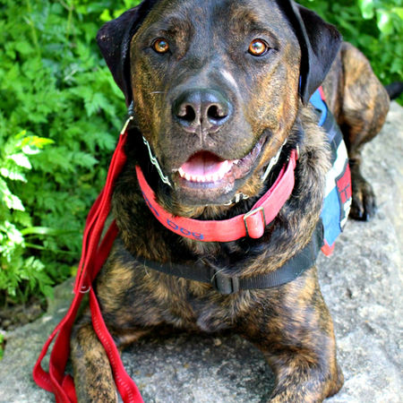 Crush is apart of our Finding Nemo Litter! He is half Rottweiler and part Lab Mastiff. Crush is our very beautiful brindle boy. He has a laid back personality that loves to train with food involved. This big boy certainly loves to play fetch all day long! He works as a Mobility, Medical Response, and Psychiatric Service Dog <3 His owner is so happy to have him and we are thrilled to watch them continue to grow together! They are working through College currently and doing well with his life as a service dog. The perfect match truly was found with these two.
