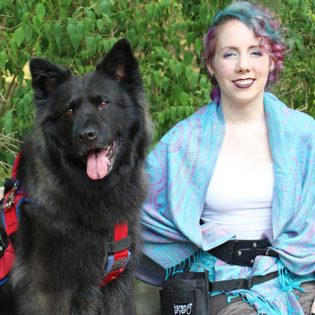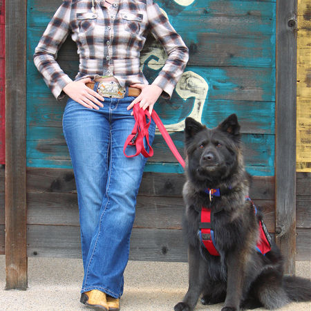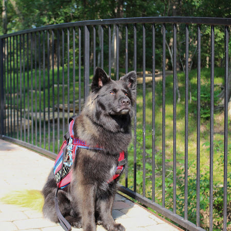 Padfoot was rescued by her handler a few years ago when she was 9 months old. We don't know what she is but we speculate her being some kind of Chow/Husky mix. She is a looker for sure!!! She has some training before coming to us, but we are helping them get the training solid and the desensitization down pat!! We are excited to see how this girl does!!! Padfoot is now graduated as a Mobility and Medical Response Service Dog and works for her handler amazingly. We are so proud of this team and how far they have come!